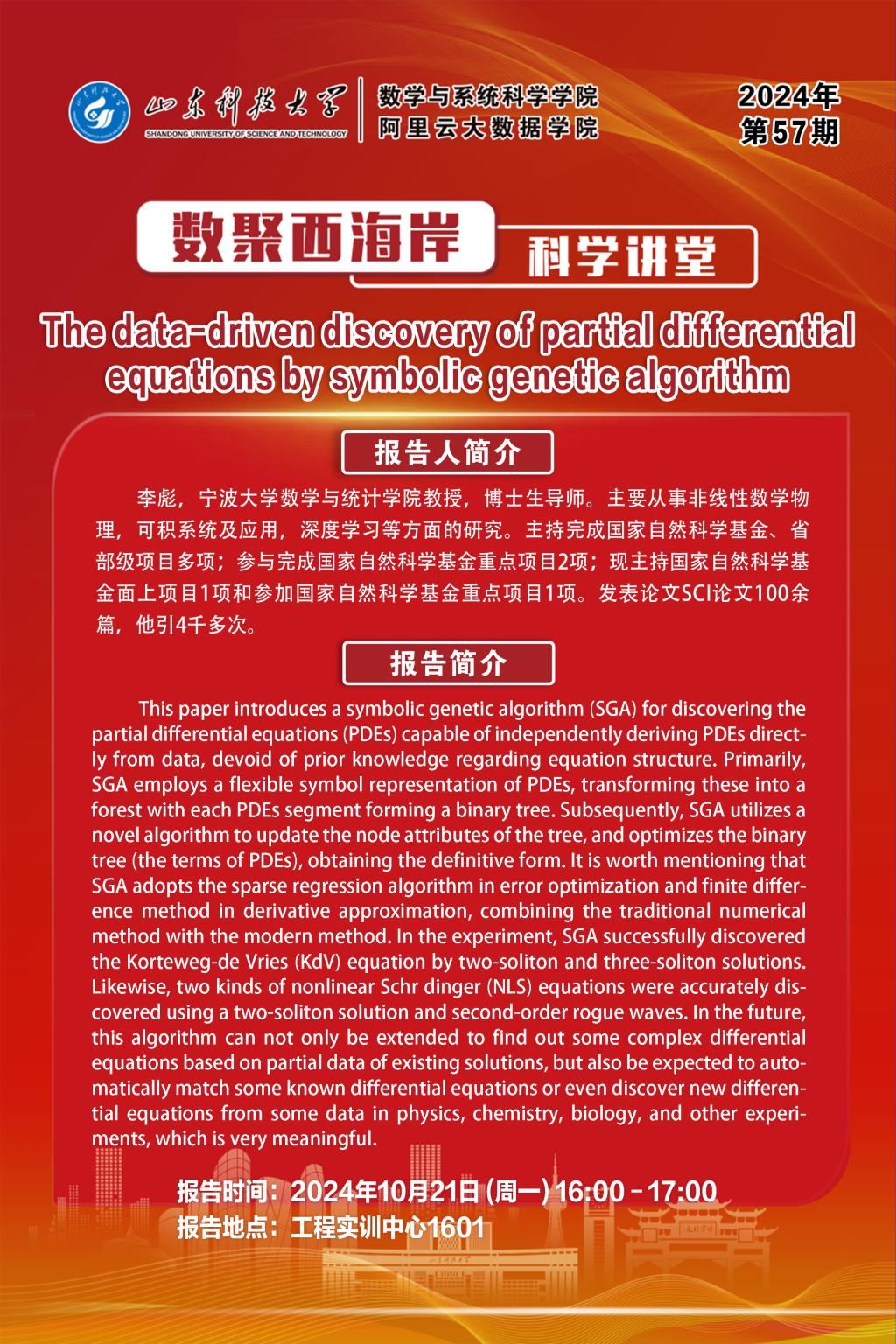 数聚西海岸科学讲堂2024年第57期:李彪教授学术报告