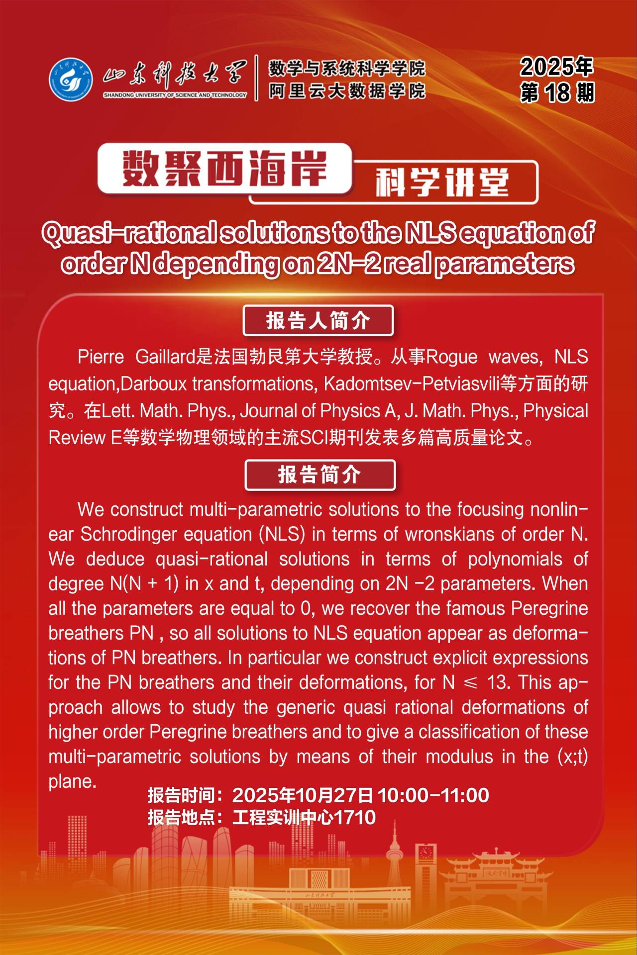 数聚西海岸科学讲堂2025年第18期:Pierre Gaillard教授学术报告