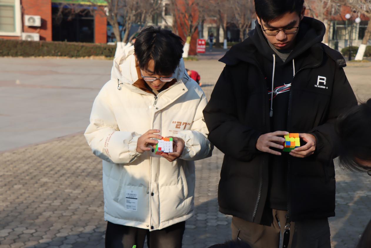 活动精心设置三大趣味环节,全方位调动学生参与热情。数学谜题闯关中,学子们或凝神挪动数字华容道滑块,或在数独方格前执笔标记、逐行排查,或围坐一团开展 24 点接力心算;数学加油站里,大家专注挑战汉诺塔、灵活转动魔方,遇到卡点时相互轻声点拨、携手攻坚,在协作中突破难题;数学策略战环节,同学们围坐棋盘或卡牌桌旁,低声交流战术、果断落子出招。现场秩序井然,气氛热烈。