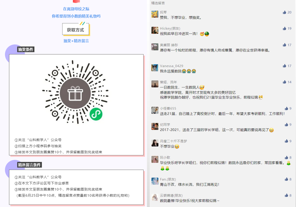 除此之外,学院还精心制作了主题手举牌,以“拍照打卡”的趣味方式,弘扬爱党、爱国、爱校情怀。同时,通过官微抽奖、精选留言等方式,留下对母校的祝福,抒发对未来的展望。