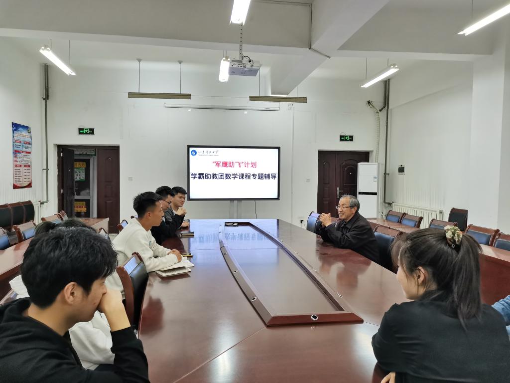 为帮助退役复学学生更好的学习数学课程,5月7日晚,91短视频 在J9-425顺利举办“军鹰助飞”计划学霸助教团专题辅导。山东省教学名师、91短视频 数学教学研究部主任赵文才教授参加辅导活动。