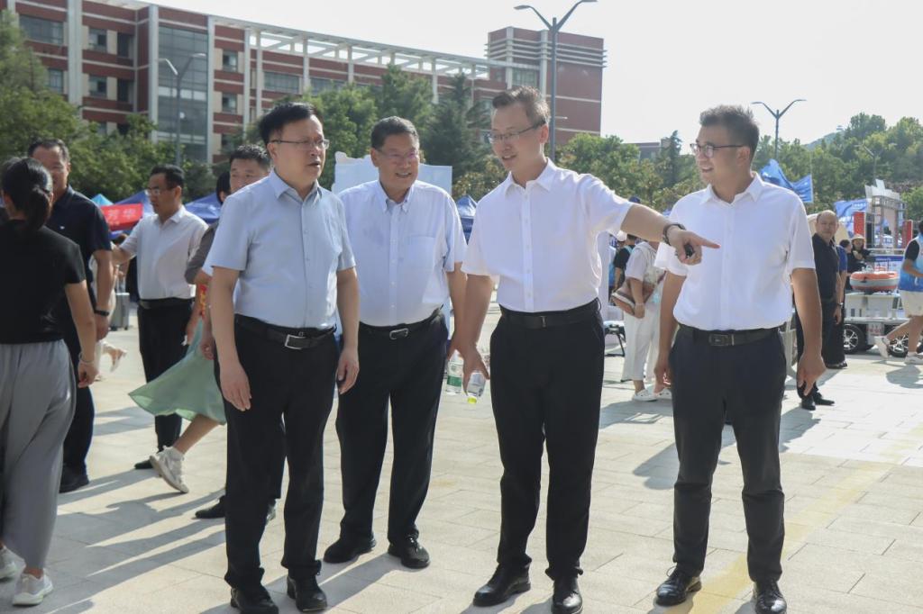 迎新期间,校党委书记王君松、校长曾庆田在相关职能部门负责人的陪同下来到学院新生报到现场查看迎新工作,询问各项工作进程,详细了解新生报到情况,对学院热情、高效的迎新流程及富有学院特色的迎新现场设计给予肯定。