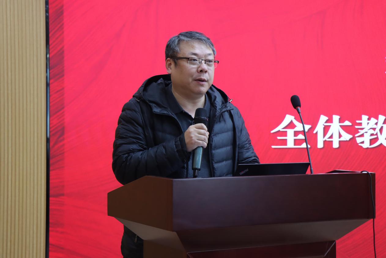 组织全体教职工于工程实训中心1603报告厅开展政治理论学习会议。会议由副院长张同迁主持。学院领导班子成员、各系室负责人及全体教师参会。