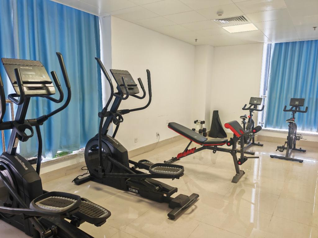 配备了单车、椭圆机、力量训练设备(哑铃及哑铃凳)等各类健身器材,满足大家多样化的健身锻炼需求。