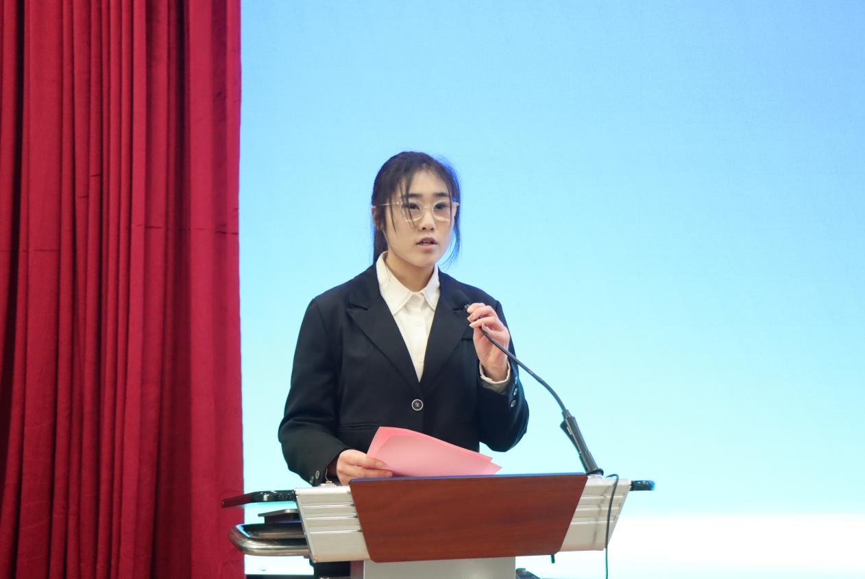 2022级数学与应用数学专业学生李慧琳作为往届获奖学生代表发言。她鼓励参赛同学以赛为媒、以赛促学,用过硬的专业能力和创新思维为学校“冲一流”建设贡献青年力量。